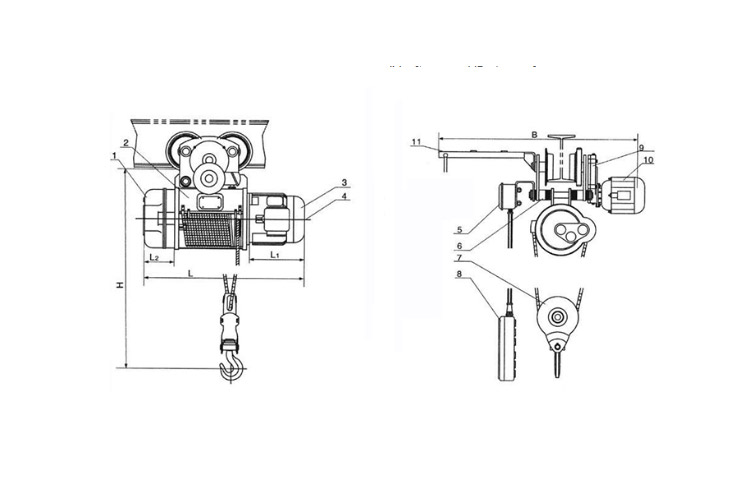 (1)防爆电动葫芦运行电机防护等级为IP54,绝缘等级为F级;