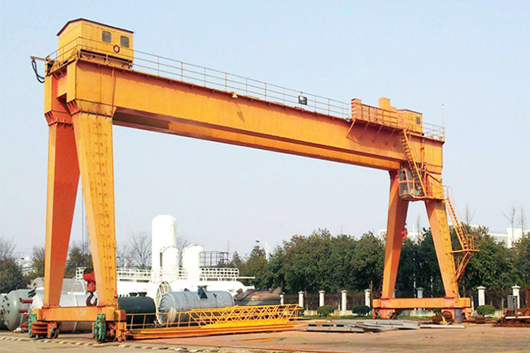1.门式起重机又称为龙门吊,在张家港地区应用广泛,主要用于港口码头、室外的货场、料场货、散货的装卸作业。门式起重机具有使用范围大、场地利用率高、适应性广泛、通用强等优势,在张家港大部分运输制造业得到使用。门式起重机由电动葫芦、吊车、小车行走机构、控制室和电气控制系统组成,龙门架为箱形结构,轨道位于主梁两侧,支腿按使用要求可分为A型和U型。该类型起重机的金属结构像门形框架,承载主梁下安装两条支脚,可以直接在地面的轨道上行走,主梁两端可以具有外伸悬臂梁。