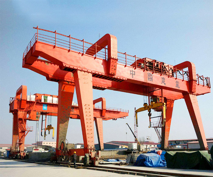 (4)双悬臂门式起重机:比较常见的一种结构形式,其结构的受力和场地面积的有效利用都是合理的。